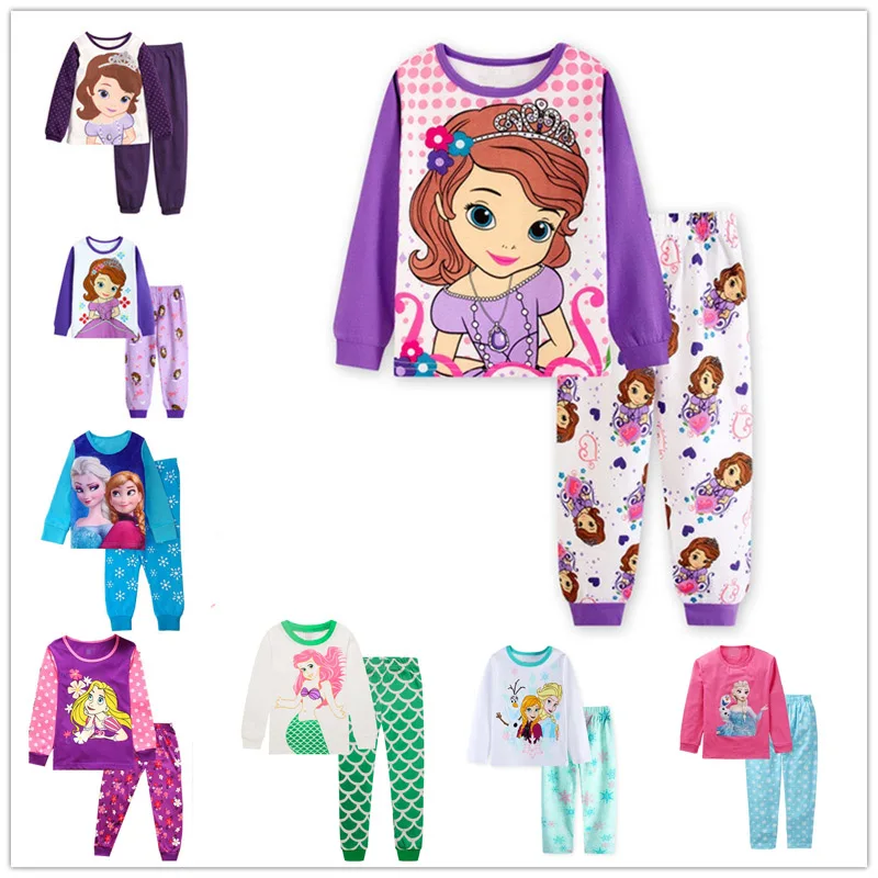 Cartoon Princess Elsa Anna Sofia Pajamas Casual Set Cotton Full