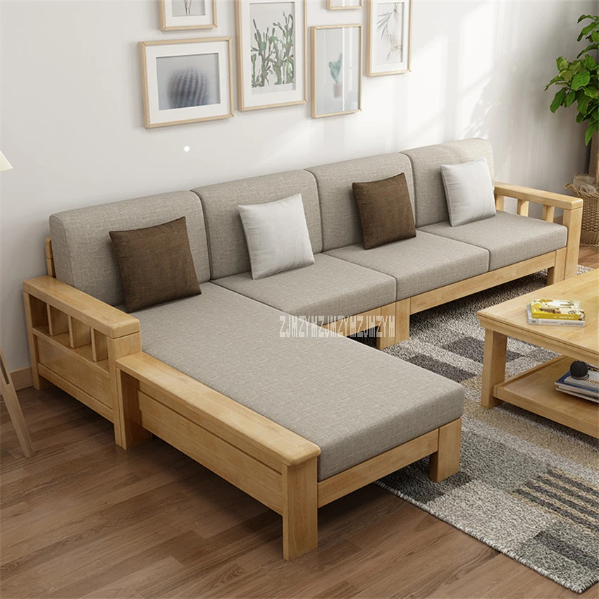 Latest Design Rubber Wood Living Room Furniture Corner Sofa Set