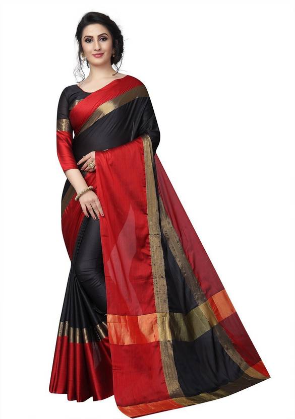 Buy Arrayblue Self Design Fashion Cotton Silk Black Red Sarees