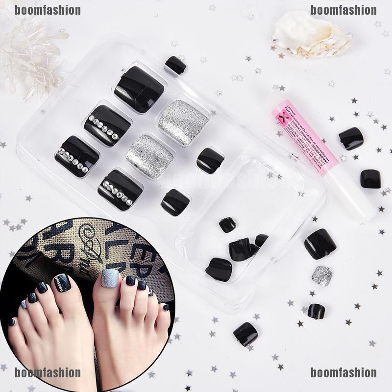 False Fake Designed Toes Diy Nail Art Black Gray French Toenails Design