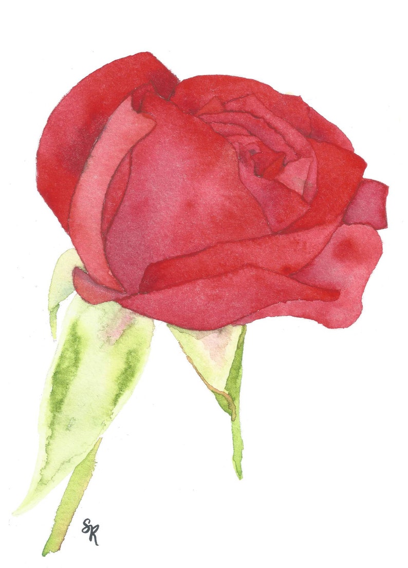 Red Rose Original Watercolor Painting Printable Download
